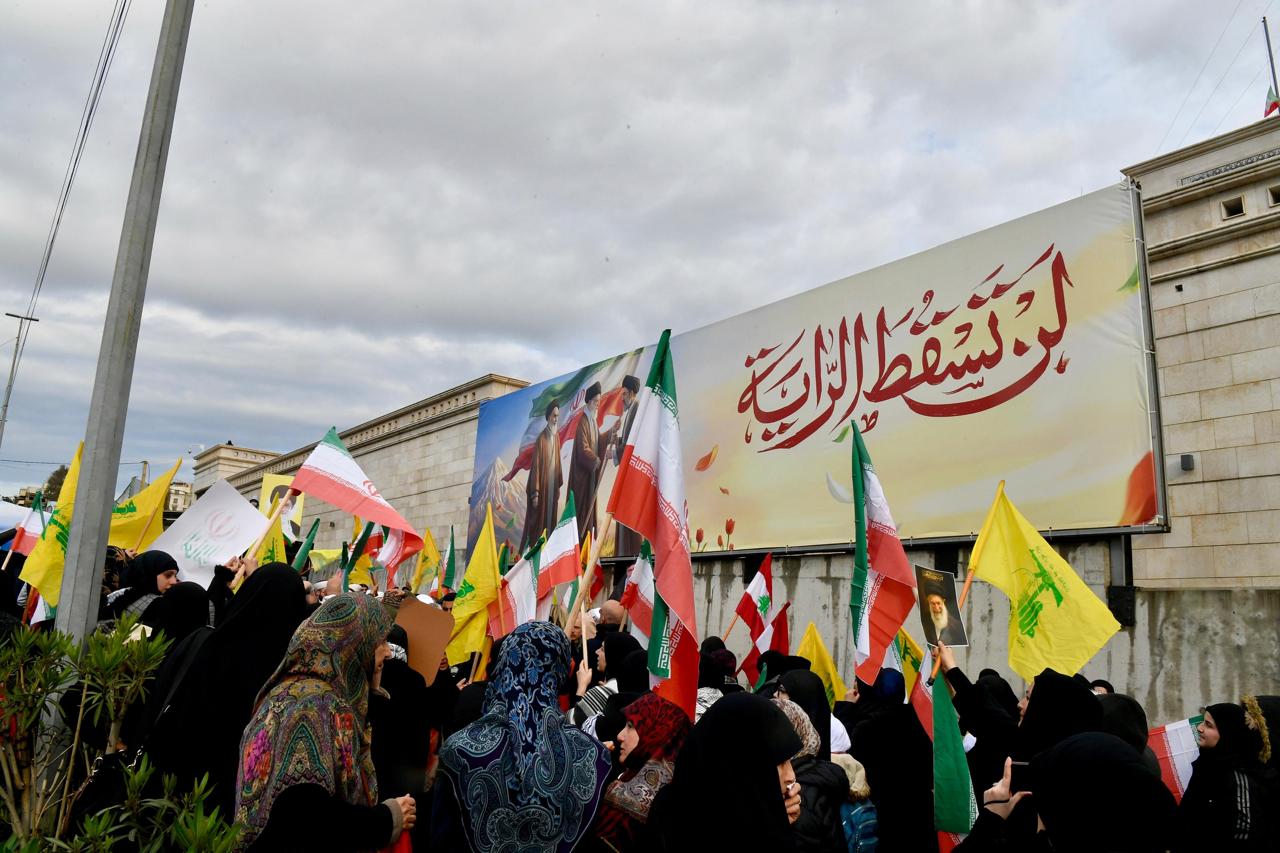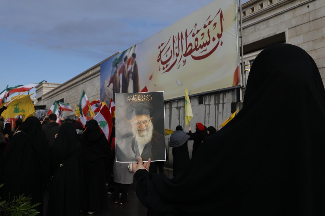 وجوه وحكايات دعماً لإيران…في لبنان تصوير: عباس سلمان 27/03/2026 مناصرون لإيران في بيروت المشاركة النسائية في التظاهرة كلمات وتأييد خامنئي حاضرا الشارع الداعم حاملو الراية حزب الله الحاضر الأكبر من أمام مبنى السفارة الإيرانية في بيروت 🔊 اســـتمع للخــبر