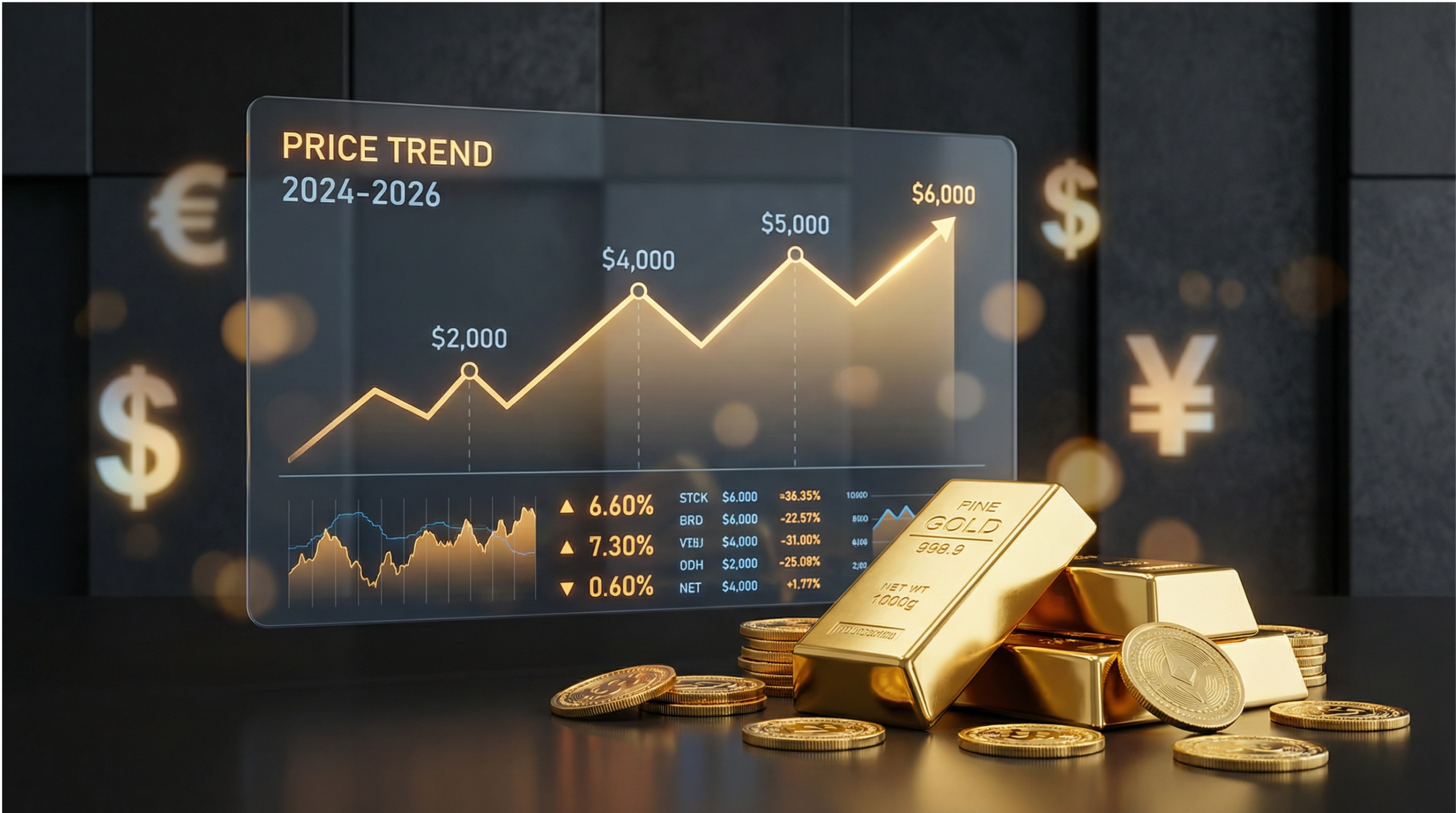 وتشير النماذج الفنيّة إلى أنّ الهدف متوسّط الأجل لهذا الاختراق يقع في نطاقٍ يتراوح بين 5,000 و6,000 دولار للأونصة. وعلى المدى الطويل، يرى بعض المحلّلين أنّ الدورة الحاليّة، التي بدأت من قاع عام 2015، قد تدفع بالأسعار نحو مستويات 9,000 إلى 10,000 دولار، قياسًا على الدورات الصاعدة الكبرى السابقة.