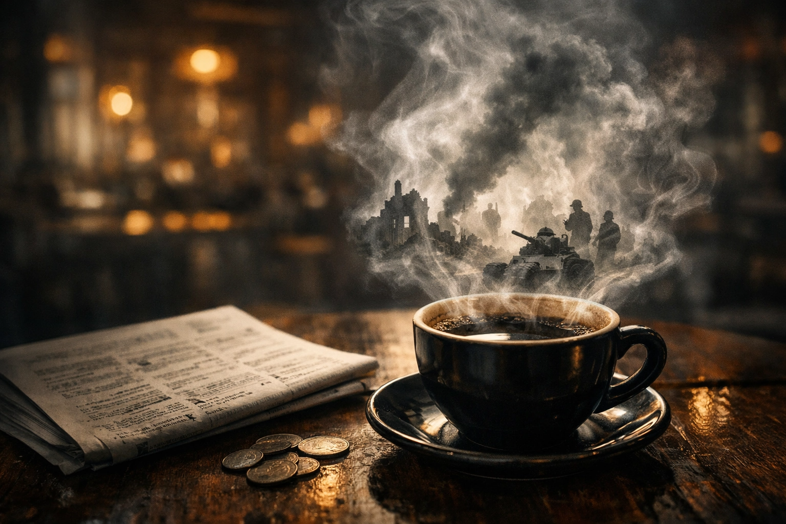 بل هنا. على الطاولة. بين فنجان قهوة… وضمير يحاول أن يبقى نائمًا.