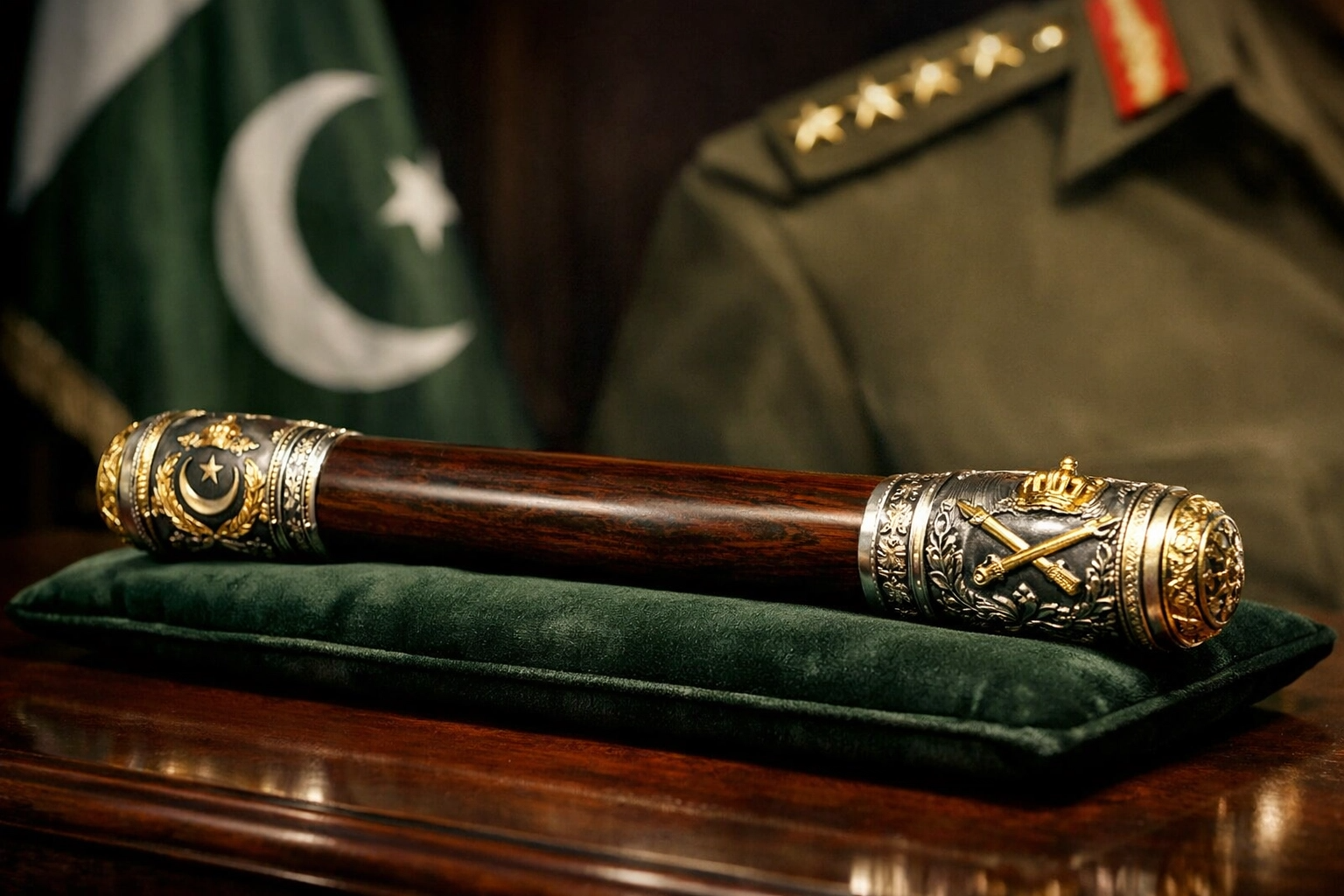 في يد قائد الجيش الباكستاني، تختصر العصا ثلاث دلالات أساسية. أولًا، هي رمز السلطة، باعتبارها تجسيدًا بصريًا للتفويض الرسمي الممنوح للقائد لإدارة شؤون المؤسسة العسكرية. ثانيًا، هي علامة رتبية تؤكد الموقع الاستثنائي لحاملها داخل البنية القيادية. وثالثًا، هي ترجمة لتقاليد الانضباط والاستمرارية التي تحرص المؤسسة العسكرية الباكستانية على إبرازها كجزء من هويتها التاريخية وهيبتها المؤسسية.